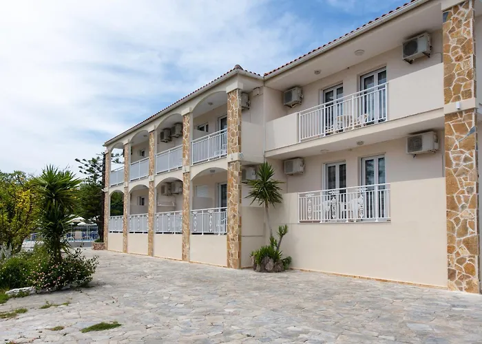 Het pand met 64 kamers is op 5 km van de luchthaven Zakynthos en momenten van de Tourist Train bushalte.