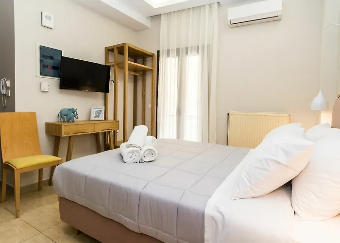 Capolavoro Suites Zakynthos hotel met 6 kamers ligt binnen 5 minuten loopafstand van Dimokratias-plein en biedt autoservice, evenals auto's te huur. Tijdens uw verblijf in dit hotel wordt u uitgenodigd om de haven van Zakynthos in de buurt te ontdekken. Op slechts 250 meter hier vandaan kunt u het Byzantijns museum van Zakinthos bereiken.